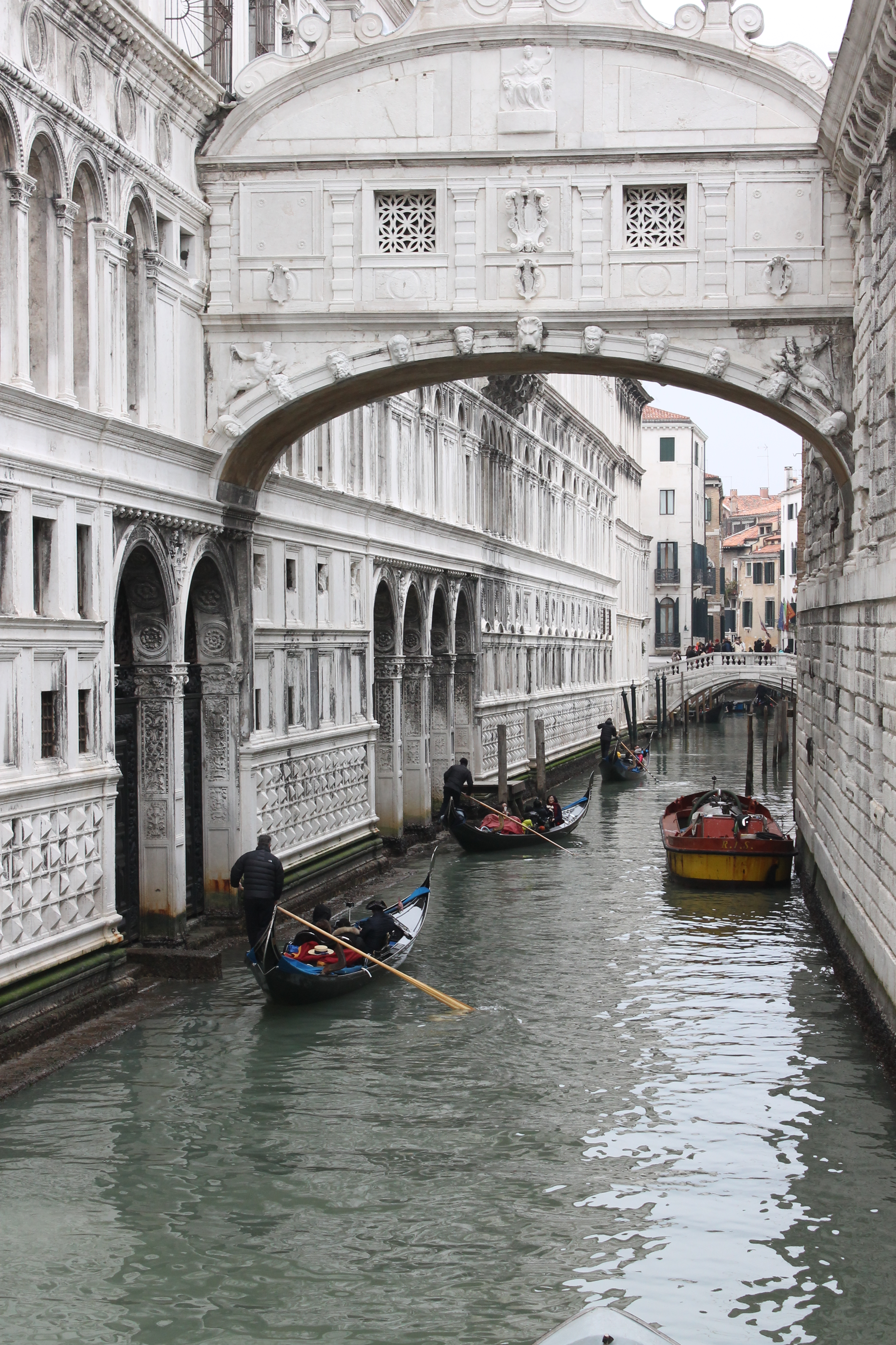 Afterwards we headed off in search of masks to join in on the festivities of carnivale; in our search for the best masks we wandered onto the Ponte di Realto a bridge overlooking the Grand Canal. Then before it became dark we headed back to the shore near St. Mark’s Square to get a Gondola ride. Although gondola rides are quite expensive €80 for 30 mins we decided to split the cost and go for it anyone because who knows when I would come back to Venezia. After having a beautiful (but expenzive) dinner by the grand canal we decided to look for Arsenale where our hostel clerk had said some festivities would be going on. Arsenale turned out to be very difficult to find and we got very very lost on the way there. So although google maps said would only take 15 minutes took us an hour to get there! Nevertheless we found some other lost tourists on the way and we all walked through the silent narrow streets of Venezia together. Arsenale ended up being kinda of a dud because we got late while we lost we missed the fireworks and all that was going on was a super cheesy 70’s band playing inside a warehouse.