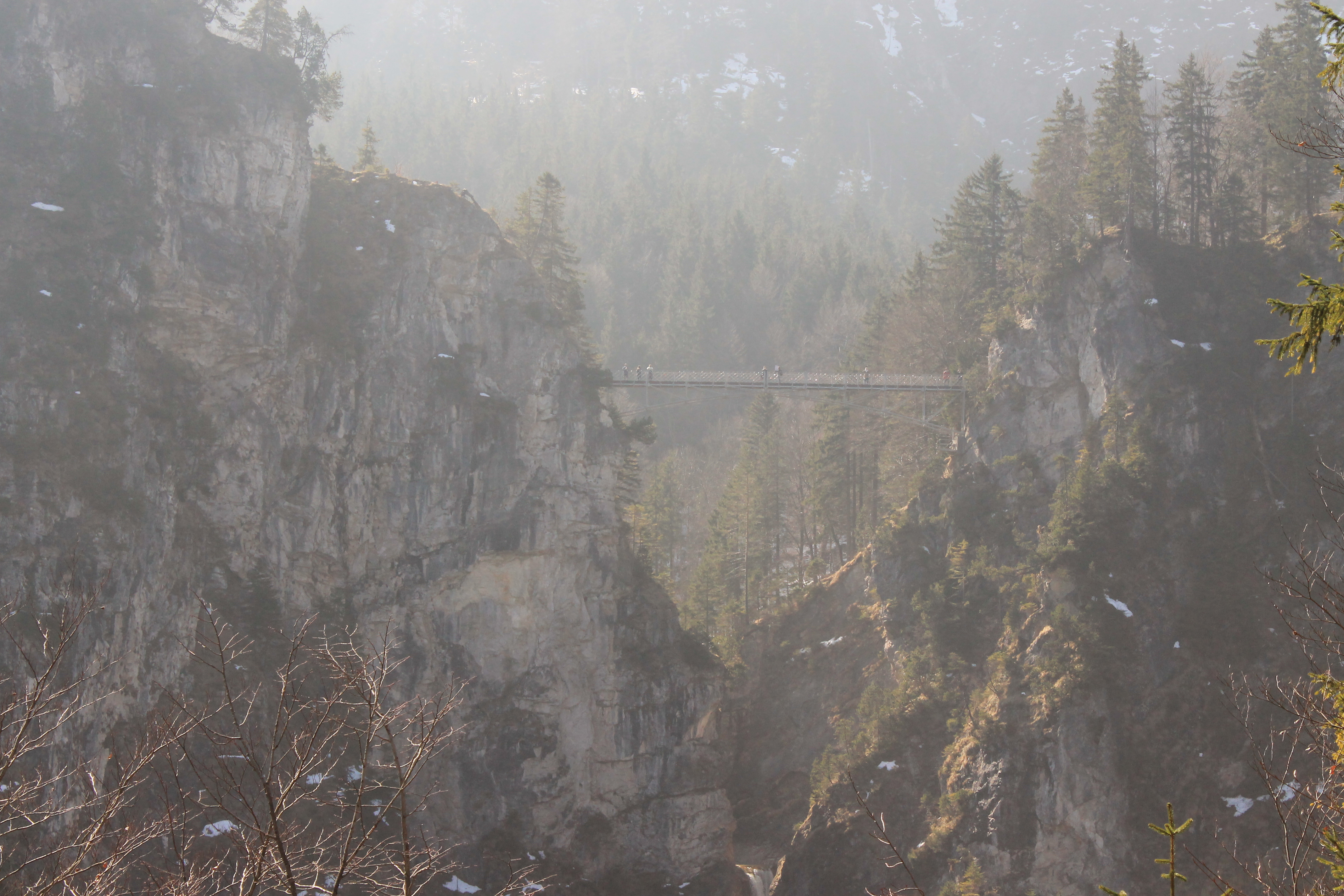 Then we left Munich to visit Neuschwanstein Castle which is about a two hour drive from Munich. We had to park our car at the bottom of the hill and hike up to the top of the hill that the castle is located on. Inside the castle we got a pretty good tour that was included in the ticket. We learned that King Ludwig of Bavaria started building the castle but passed away before it could be completed. The throne rooms and his chambers were all very elegant and had beautiful paintings and chandeliers. King Ludwig was a huge fan of Otto Wagner so most of the paintings depicted scenes from Wagner’s Operas. Sadly they don’t allow photography inside the castle so I had to make do with taking picture from the outside. Once we left the castle we wanted to go on a trail that lead to a suspension bridge with a fantastic view of Neuschwanstein but there was a gate blocking the trail. We then saw a large number of other tourists jump around the fence so we decided to just follow. There was a lot of ice on the trail which is probably why they closed it off but it wasn’t too difficult to walk it carefully/ hold on the rails for dear life. In about 10 minutes we reached the bridge which had an amazing view of the castle; making the slightly perilous trail well worth the view.