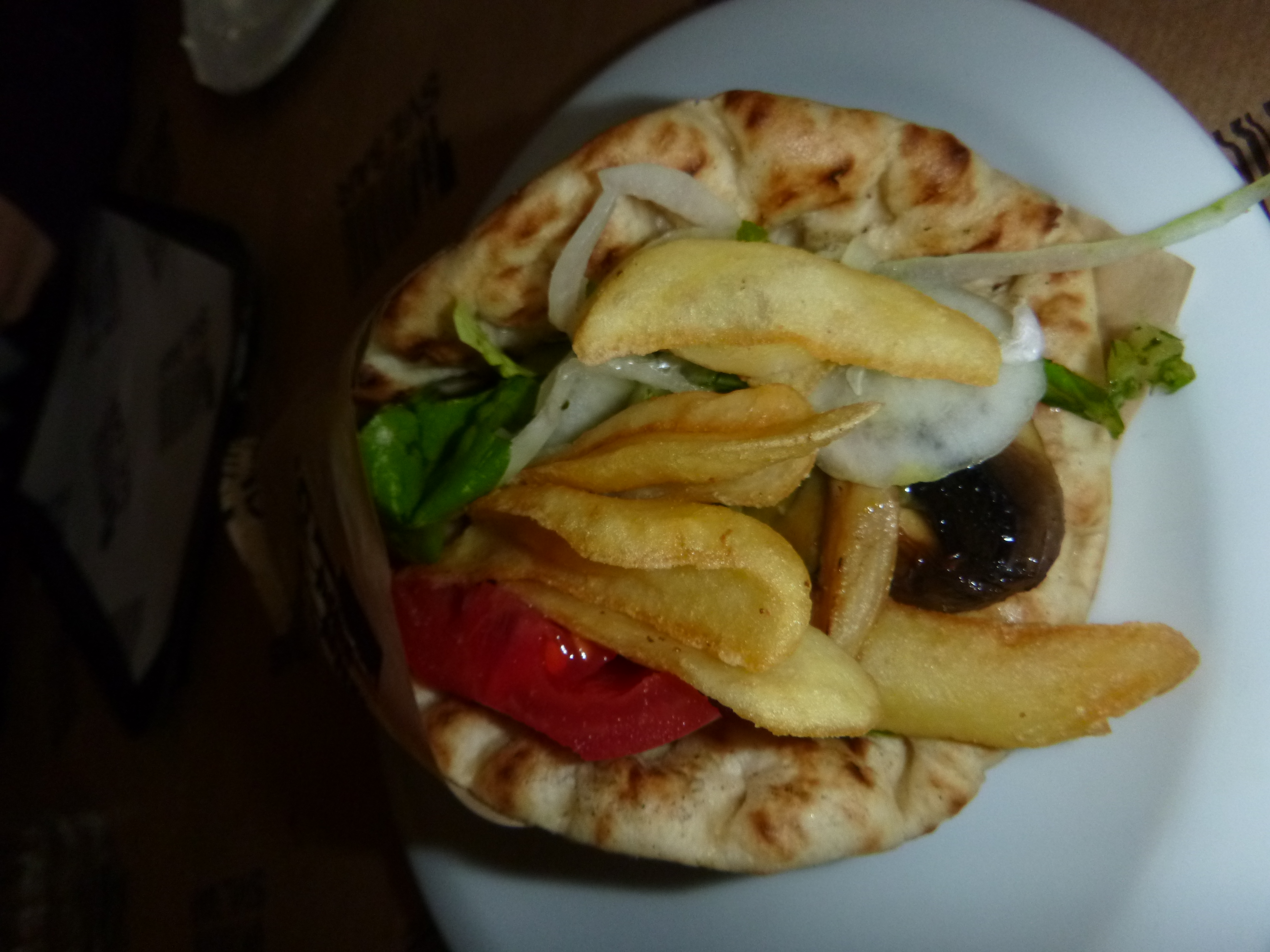 Once in Monostraiki we wanted to avoid the tourist trap restaurants so we walked around until we came across a pretty cool souvlaki place on the edge of the area. There we were able to get some really tasty appetizers and souvlaki wraps for only €2!