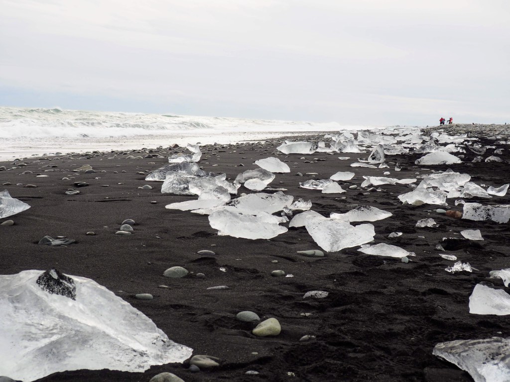 After the canyon we headed to Jökulsárlón Iceberg Lagoon and diamond beach. Jökulsárlón formed when Breiðamerkurjökull glacier started retreating, leaving the lagoon in its path with floating ice chunks. These chunks then make their way to the black sand beach where they look like diamonds in contrast with the dark sand.