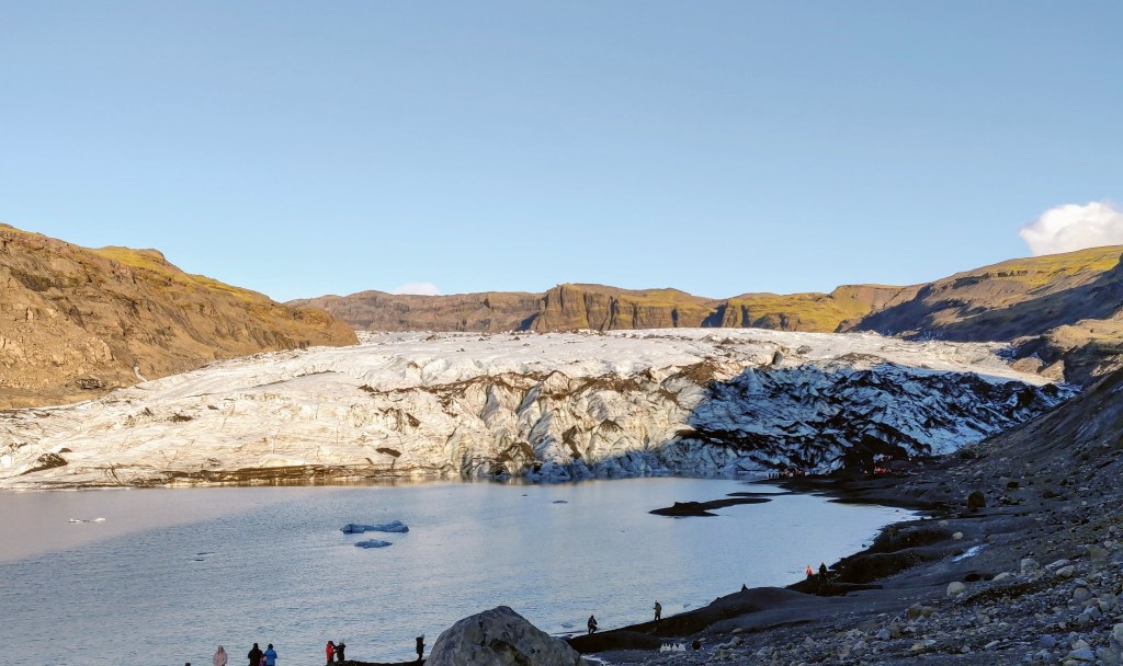 Next we headed to the Mýrdalsjökull Glacier where you can take a guided hike onto the glacier using crampons and equipment if you are so inclined. We just opted to take the short walk up to touching distance of the glacier and soak in the views of the surrounding mountains.