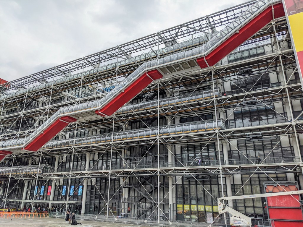 The second day we woke up to a pretty dreary day so we decided to explore a historic neighborhood known as Le Marais shopping, visiting the Pompidou museum and eating delicious food. I highly recommend stopping by Tout Antour Du Pain one of the highest rated bakeries in Paris where I had the best croissant of my life, seriously, I still salivate just thinking about it. For lunch we had delicious Mediterranean food at L’as du Falafel which was the most crowded place we went to when in Paris. And then before heading home we sheltered from a cold rainy afternoon with tea at Mariage Frères. The Centre Pompidou is not only a really cool architectural with exterior escalators and giant colorful tubes but also a really great modern art museum.