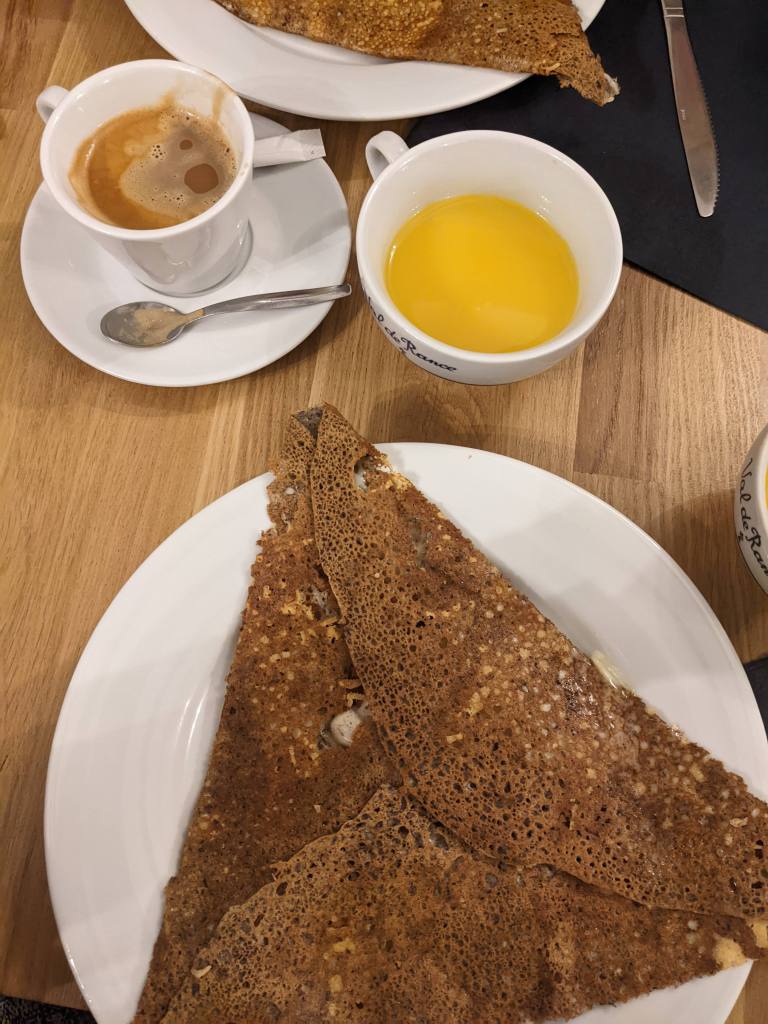 We had originally planned to go to Versailles but the gloomy weather made us think the trip out of the city wasn’t quite worth the time. In order to fly back to the US we started our morning off with a covid test at a pharmacy near our airbnb and picked up some French skincare while we were there. After a quick breakfast at a local cafe we headed back to Le Marais to do some more shopping at eat the great restaurants in the neighborhood. We got crepes from a stand near the train station when arriving. Then after a little shopping we decided to duck out of the rain by stopping for happy hour. We rounded off the day with a tasty dinner at Chez Omar, an Algerian restaurant. After eating mostly French food for several days it was nice to get dishes with middle eastern influence. The meal was a wonderful way to cap off our incredible week in Paris. I know Paris is definitely a city I want to return to many times in the future!