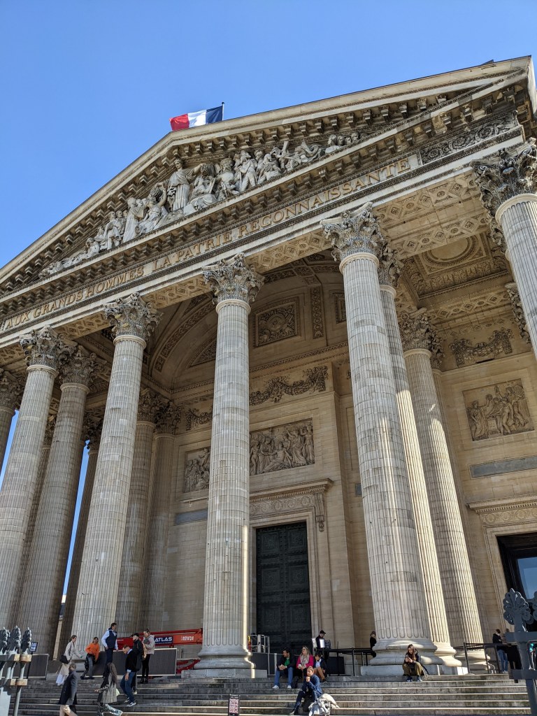 After several rainy days we got a sunny day on Day 5 and wanted to take full advantage of the nice weather. We decided to hit up a few of the touristy spots in the 6th arrondissement and then spend the afternoon reading in the Luxembourg Gardens. First we visited the Notre Dame, which is sadly still closed for renovations since the fire in 2019 but we did get to take it in from the outside. Then right across the street we stopped by the legendary Shakespeare and Co bookshop where many famous English writers found a home such as Fitzgerald, Hemingway and Bradbury. After purchasing our books we stopped by the coffee shop next door for some breakfast and then walked down to the Pantheon. Although the French Pantheon is much newer (c. 1790) than the Roman one it is still a very impressive and beautiful building to go inside. After spending some time in the Pantheon we walked down to the Luxembourg Gardens where we ate a lunch of baguette sandwiches and enjoyed reading in the sunshine. Once we got enough sun we took a quick metro to Champs-Élysées the high fashion street of Paris. We saw the Arc de Triomphe and window shopped stores like Louis Vuitton and Cartier.