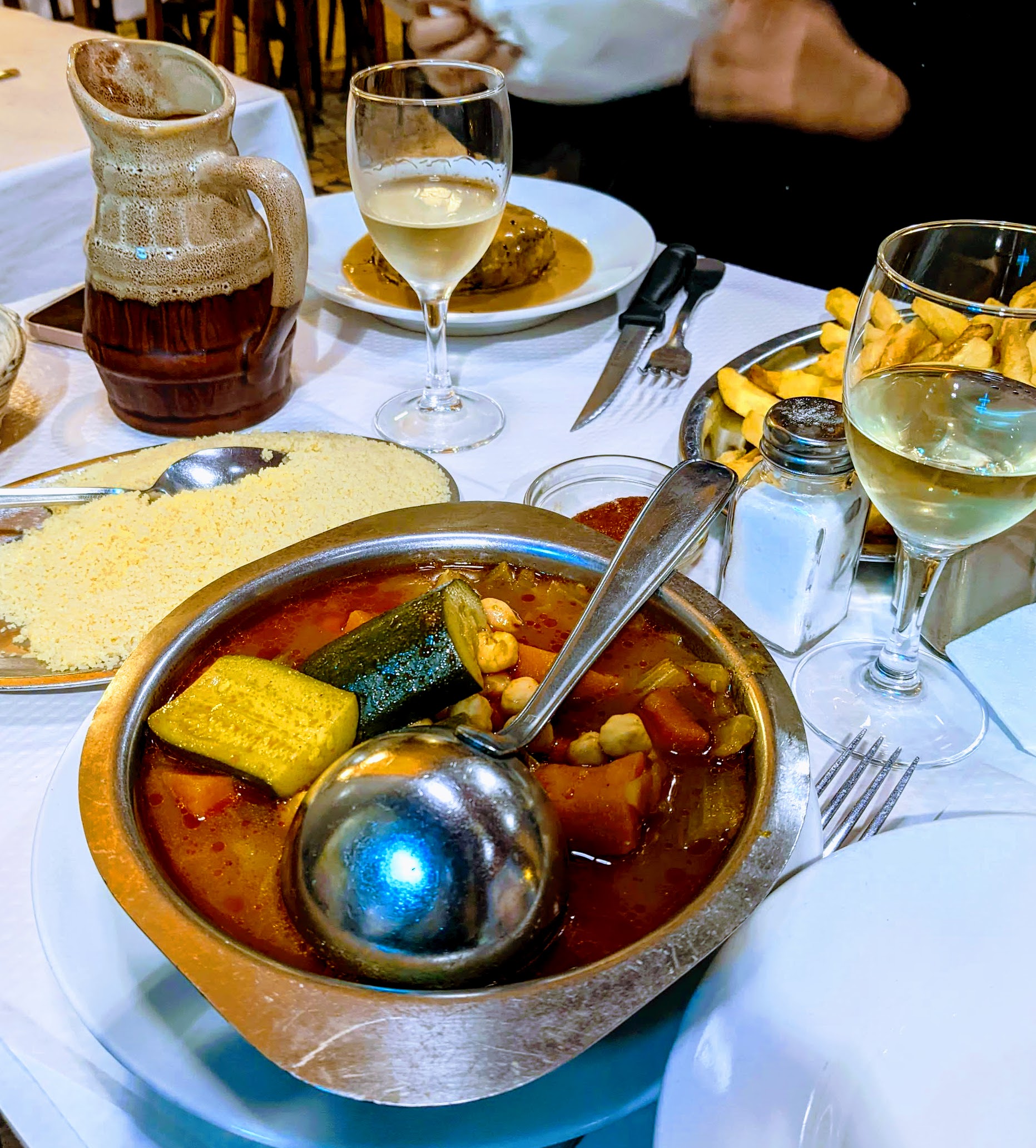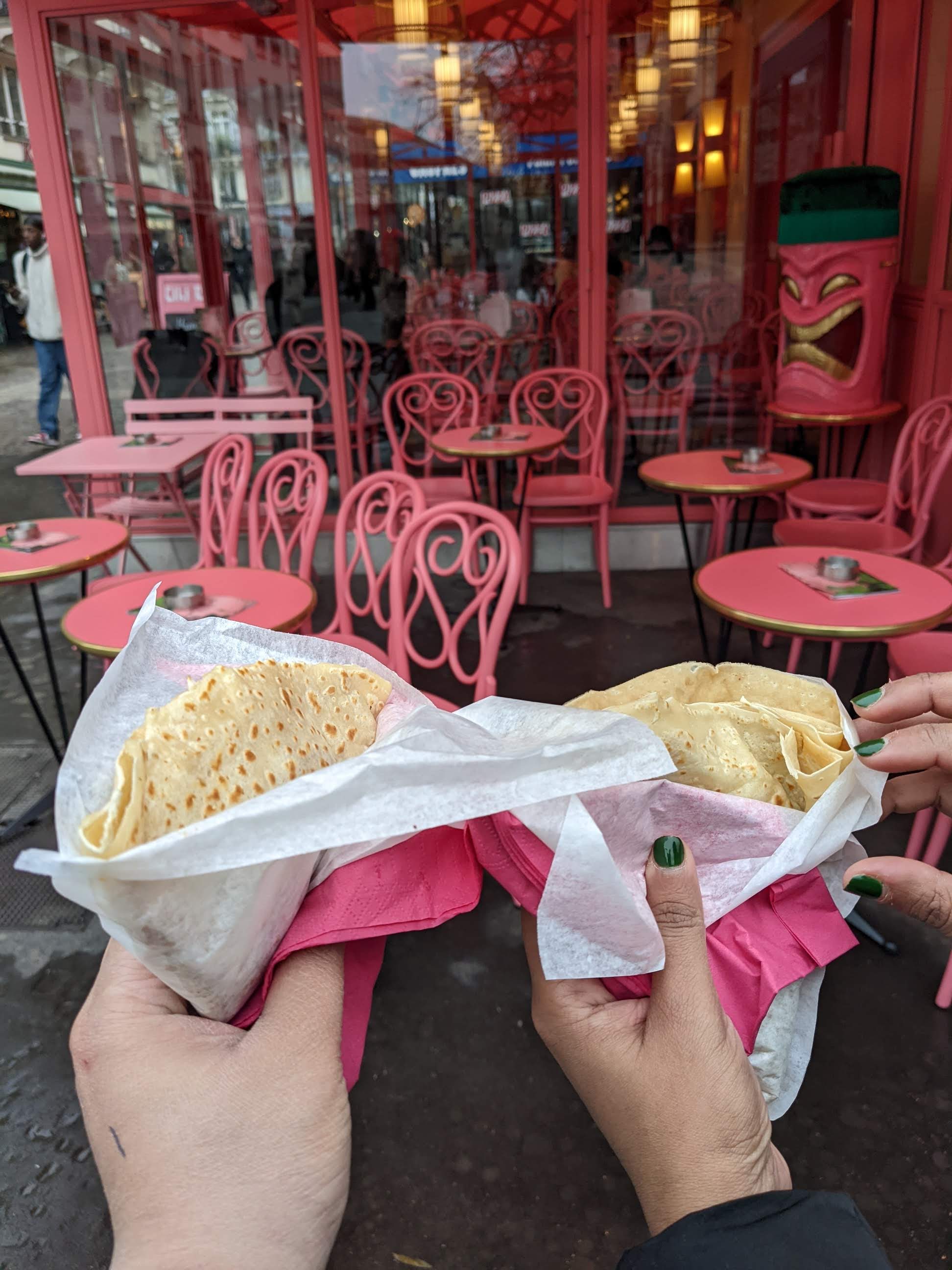 We had originally planned to go to Versailles but the gloomy weather made us think the trip out of the city wasn’t quite worth the time. In order to fly back to the US we started our morning off with a covid test at a pharmacy near our airbnb and picked up some French skincare while we were there. After a quick breakfast at a local cafe we headed back to Le Marais to do some more shopping at eat the great restaurants in the neighborhood. We got crepes from a stand near the train station when arriving. Then after a little shopping we decided to duck out of the rain by stopping for happy hour. We rounded off the day with a tasty dinner at Chez Omar, an Algerian restaurant. After eating mostly French food for several days it was nice to get dishes with middle eastern influence. The meal was a wonderful way to cap off our incredible week in Paris. I know Paris is definitely a city I want to return to many times in the future!