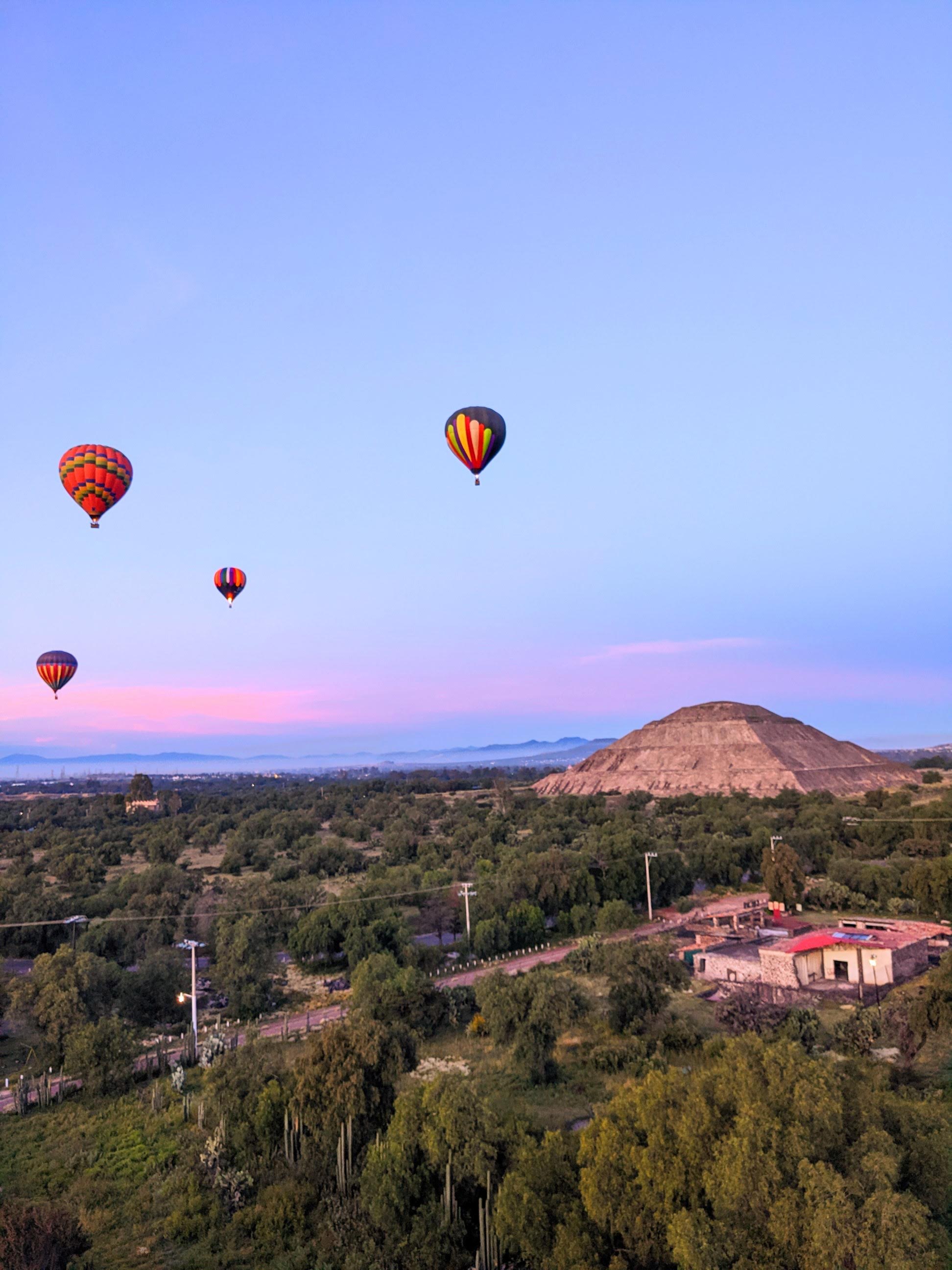 Teotihaucan– On our second day we visited Teotihuacan, the most important and largest pre-Aztec city in central Mexico, located 30 miles outside of Mexico City. We decided to take a hot air balloon ride over the pyramids. We had to leave our airbnb at 5am into order to get to the tour company in time to lift off just as the sun was rising. Watching the sun come up over the pyramids and mountains around the site was truly a magical experience that I would highly recommend to anyone visiting! After the tour we grabbed breakfast and headed over to walk around the pyramid site. Here we solicited a tour guide and learned about the history and reconstruction of the site. It was fascinating to learn so much about the ancient culture that resided in this city close to 400 a.d. We didn’t get back to the airbnb until late afternoon on this day so afterwards we only had time to have dinner.