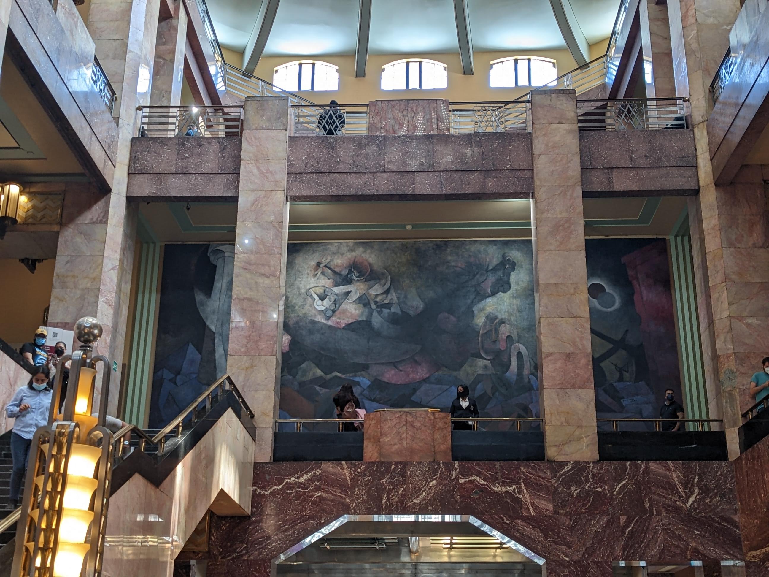 Biblioteca Vasconcelos, Zocalo, Palacio de Bellas Artes– Our last day is Mexico City we decided to take a walking tour of the Zócalo, or main plaza. But before we started the tour we really wanted to stop by to see the famous Biblioteca Vasconcelos. Designed by Alberto Kalach, this library is famed for its suspended bookshelves that hold around 106,000 titlesThis plaza dates back to the Aztec period and we were able to see many of the ruins that were found under the buildings built by the Spanish. Today, the plaza houses many of the most significant buildings in Mexico City such as the Metropolitan Cathedral, Palacio Nacional and Federal District buildings. After the tour we tried to go inside the Palacio Nacional but unfortunately we needed to make a reservation in advance. We were however, able to visit inside the Palacio de Bellas Artes which houses some incredible murals by famous Mexican Artists such as Diego Rivera. The building was also has incredible art deco stylistic details on the inside.
