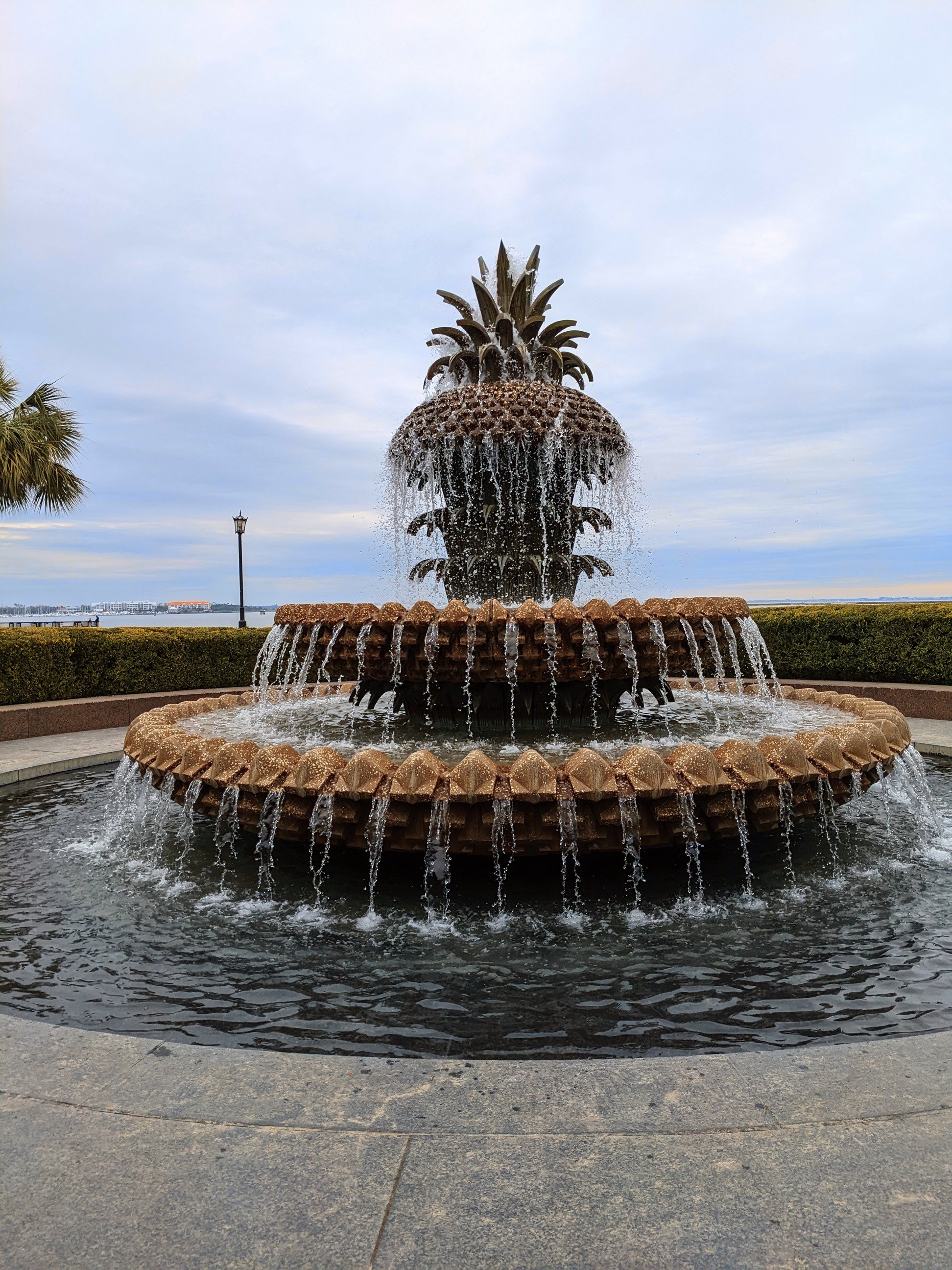 After visiting the House we decided to walk over to Rainbow Row, a series of waterfront pastel-colored houses and one of the most photographed spots in Charleston. While the Rainbow Row may be some of the most famous houses this whole area of Charleston has many historic Georgian houses and it was magical walking around. Afterwards we walked around the Waterfront Parkway and visited the Pineapple Fountain. Built in 1990 only a few months after devastating Hurricane Hugo. Despite not being local to Charleston, the pineapple is a popular symbol used throughout the city’s history and the current signature mark of Charleston. Pineapples were difficult to come across for Charleston citizens in colonial-era America and became known as a delicacy. If a host offered you a pineapple as a guest it was seen as the ultimate act of hospitality.