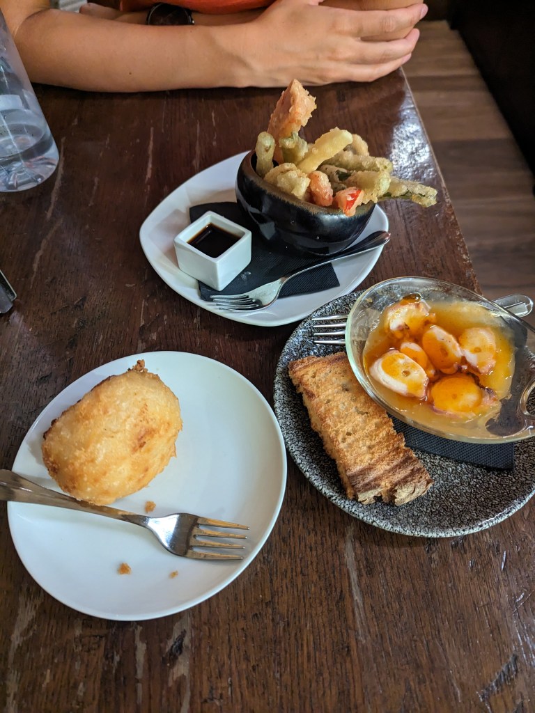 Pamplona also turned out to be one of my favorite places we stayed the night. Aside from being the biggest city on the Camino Frances, Pamplona had a incredible bustling old quarter filled with beautiful architecture, pinxo (basque word for tapas) bars and shops that made for a wonderful evening. We had drinks with some fellow pilgrims we’d met the first few days at Café IRUÑA, famously an old haunt of Hemingway when he lived in Pamplona. Then for dinner we had a few pintxos at on Calle San Nicolas, a whole street of amazing pintxo bars.