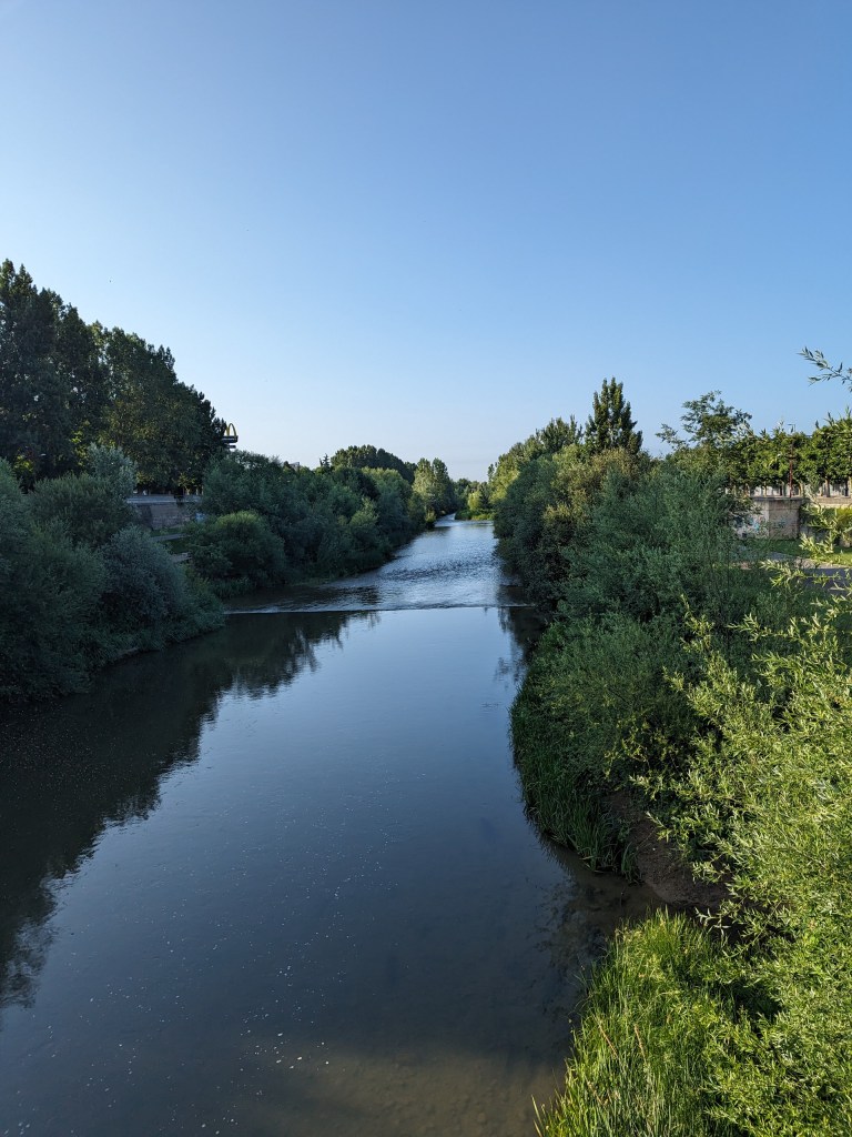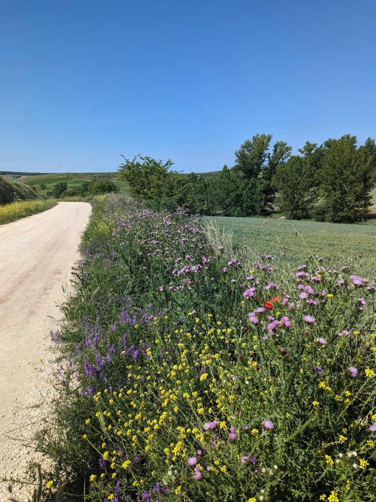 We passed a sign on our first day in the Meseta that said “No hay Camino sin la meseta” or there is no Camino without the Meseta. This was probably written because pilgrims short on time or looking to save a few miles will skip the Meseta, a flat, dry region on top of a mesa that is known as the most boring part of the Camino. While the Meseta was definitely not my favorite part of the Camino it was also much better than I had expected. I had imagined the Meseta to be a vast arid flat area that while walking we would only just see open plains ahead. It turned out to have cute towns, farm lands and trails along rivers lined with beautiful yellow flowering bushes. Also after doing plenty of elevation in our first weeks, I appreciated being able to walk on the flatter surface and give my knees a well-deserved rest.